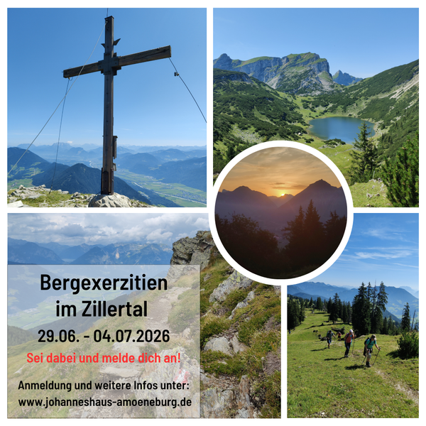 In der Zeit vom 29.06. - 04.07.2026 bietet Pfarrer Vogler wieder "Bergexerzitien im Zillertal" an. Bergexerzitien verbinden Glauben und Gemeinschafts­­erlebnis miteinander. Große Vorträge braucht es in den Bergen nicht. Die Strahlkraft der Natur wirkt aus sich heraus.